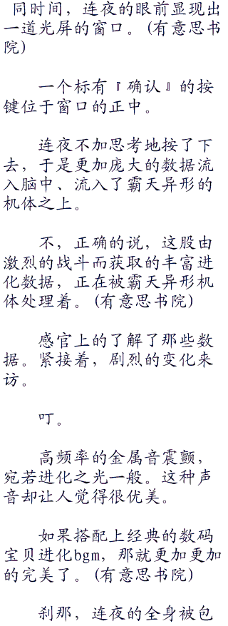“这才是酣畅淋漓的战斗啊,让霸天异形感到满足,能够促使它进化的外界因素。”