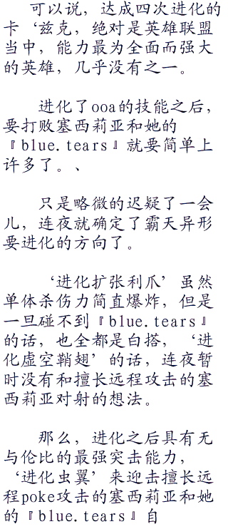 连夜满意的笑了笑,通过和『b露e.tears』这一场历时接近二十多分钟的焦灼战斗,霸天异形目前的数据配列和装备准备完成度已经到了百分之.