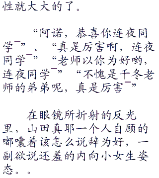反正,自己班级的班导是自家的便宜姐姐,而副班导又是便宜姐姐的花痴拥戴者,连夜的生活可以说是要过得有多舒坦,就可以有多舒坦。