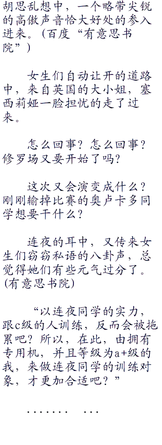 女生们每天总是有各种各样新鲜的问题,只有这一点,就连连夜都不得不佩服。