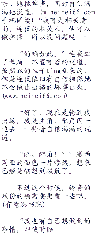 塞西莉娅本能性的合抱了一下肩膀,似乎有些担心连夜真的这样子要求她一般,她话又说得这么满,不知道如何拒绝。