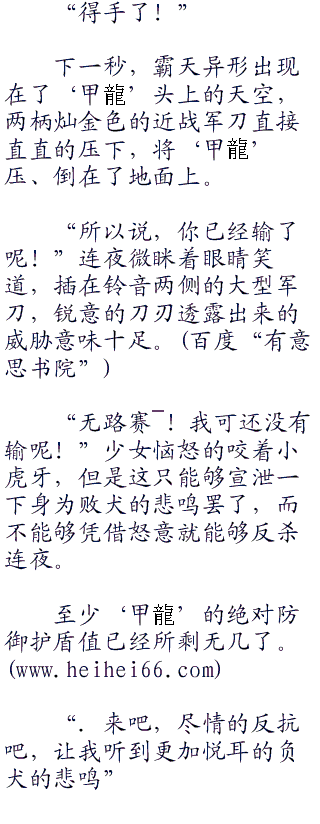 两柄重型武器的交际处发出了除了金铁交鸣之外的爆炸凌乱声音,大概是霸天异形的‘无形的恐惧’效果生效了吧,当它第一次对猎物亮出有效的锋芒,就可以触发这种无形的恐惧,然后就是‘孤立无援’的提升了。