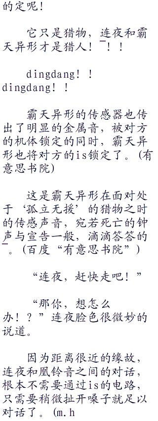 铃音似乎是被混乱搞得晕头转向的样子,好吧,被连夜压、制着的情况之下,她的确也不太清楚现在是什么情况。