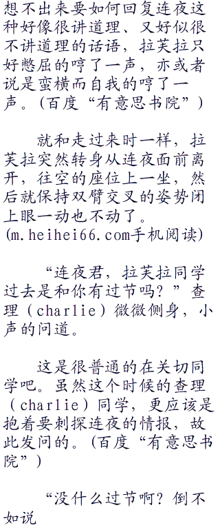 拉芙拉被这两句话呛得完全说不出话来,本来就无表情的精致脸庞因此阴郁了许多,连夜这番话语的kouwen,简直和当初织斑千冬教导她们之时所说的‘你们无需抱怨,好好听话就行了’一样。