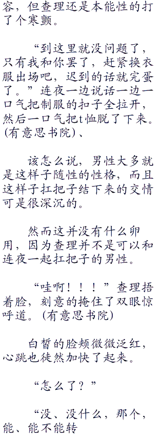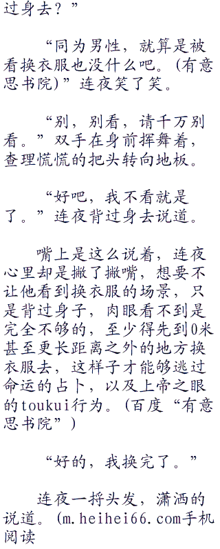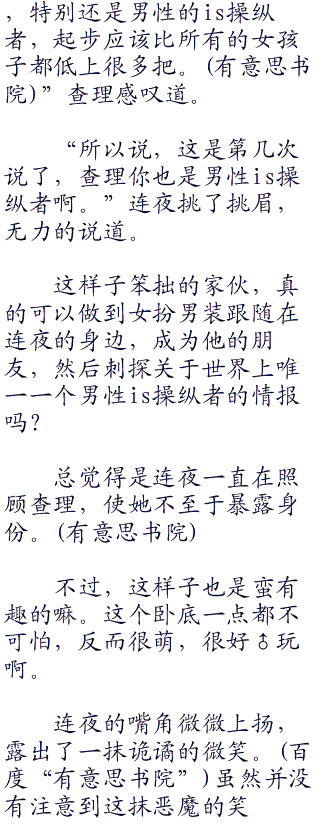 考虑到虽然刻意的掩饰自己的身份,但是查理(charlie)的身心还是女孩子的缘故,连夜姑且就原谅了她的胡思乱想。
