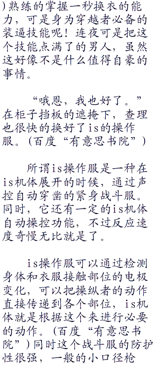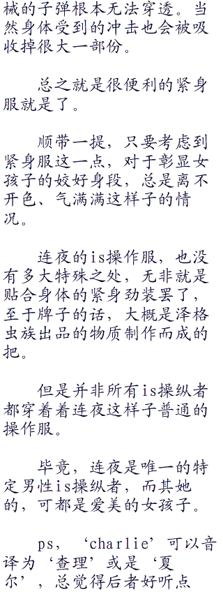 “刚才那个,,是is的局部装甲化吗?”查理露出了认真且凝重的表情问道,简直想是要记录笔记的乖乖学生一样的认真劲。