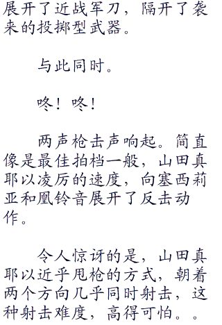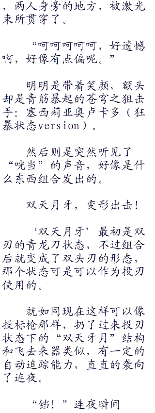 “为什么连我也?!”塞西莉娅抱怨道,比起和铃音进行表演战,她倒是更想和连夜对练。