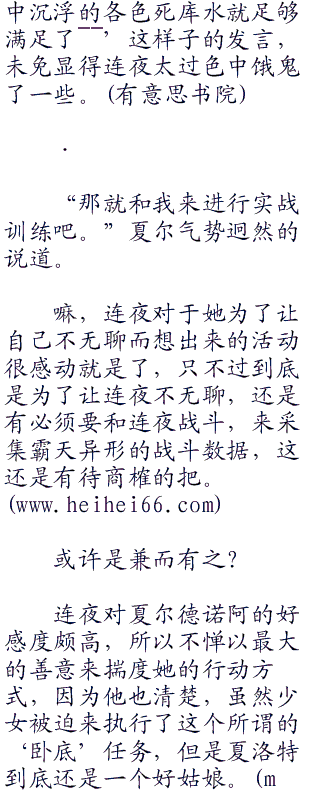 今天是夏尔转校来之后的第五天,实战训练的项目和私人加强的战斗也进行了许多次。