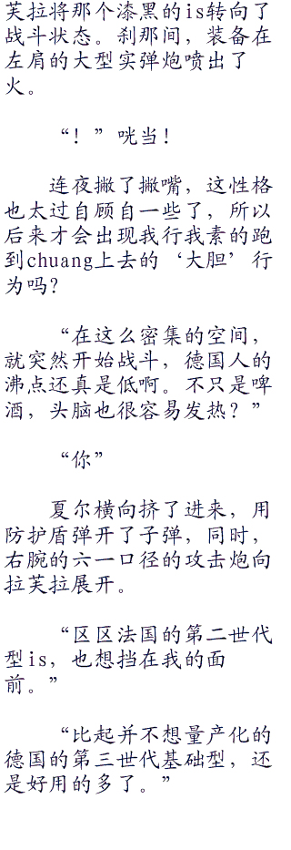 更何况,就算is的机体再怎么贴近于人体,不过是外骨骼的延伸展开这样子的结构,但是流畅度显然也不可能比得上人体本身。