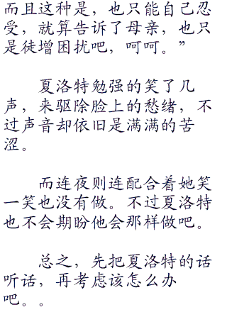 夏洛特微垂着脑袋,走过来坐到连夜的身边,chuang沿上。