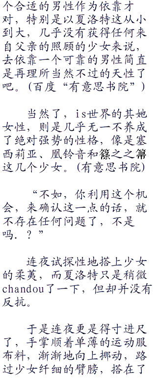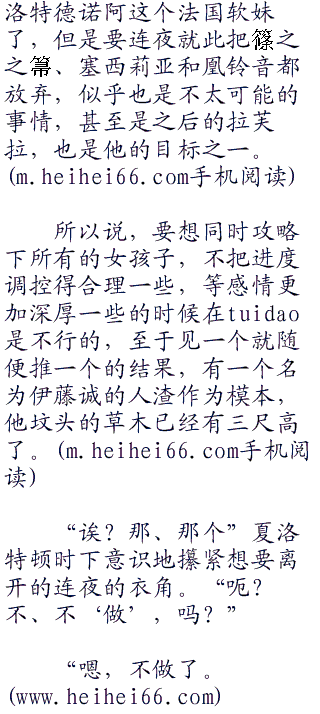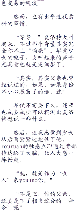 “我也很迷茫呢”夏洛特轻声ninan道,“明明只是任务的对象,明明我是盗取资料的窃贼罢了,结果却喜欢上了连夜什么的,只能够怪我自己太软弱了,太想要找一个人依靠了吧。”