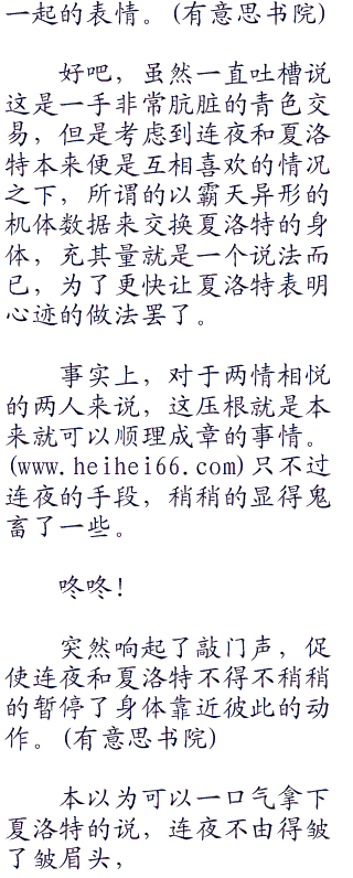 在连夜的话语之下,并不傻的夏洛特也意识到了他的真正意思,脸上不由得浮现几分慌乱与几分羞涩混合在