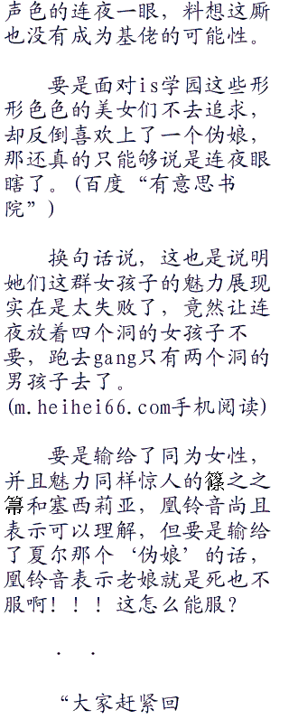 不过,唯一的例外还是有的。只有教官织斑千冬叫到时,那个声音才被赋予了意义。每次感到这一点,心里便有一种充实的感觉。