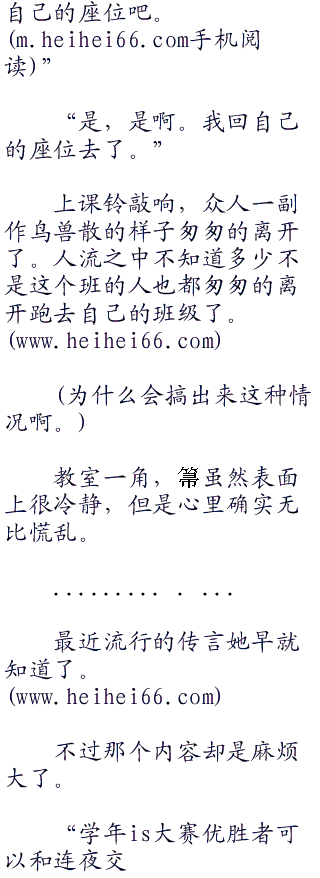 “是真的啊!最近这个消息学校里流传的很广呢。在月末的学年个人赛里优胜的人,就有和连夜君交往的权利。”