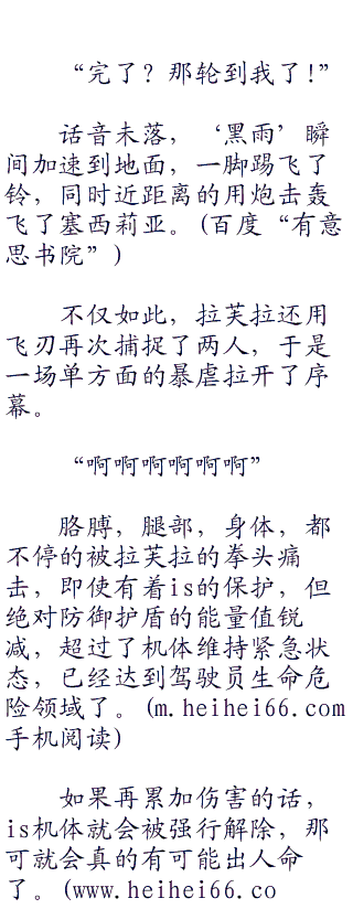 面对肩部装甲被击飞,整个姿势完全失控的铃音,拉芙拉的手刀毫不留情的进行突刺。