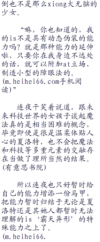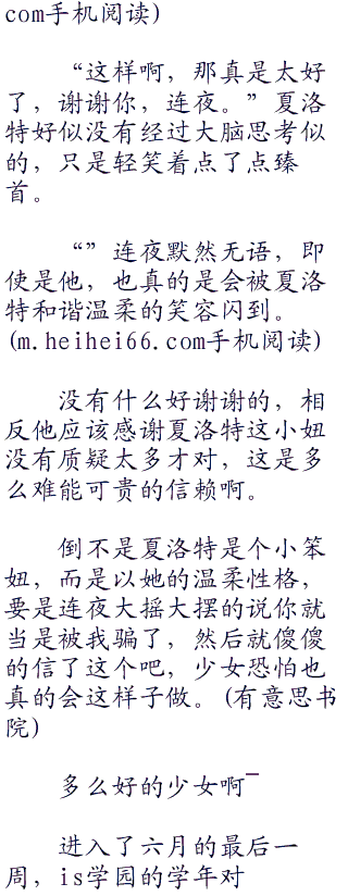 重新来看的话,夏洛特长的真的很漂亮,何况还有那种环绕周围的无公害气息,让连夜不由得为此心脏以超频的功率在跳动着。