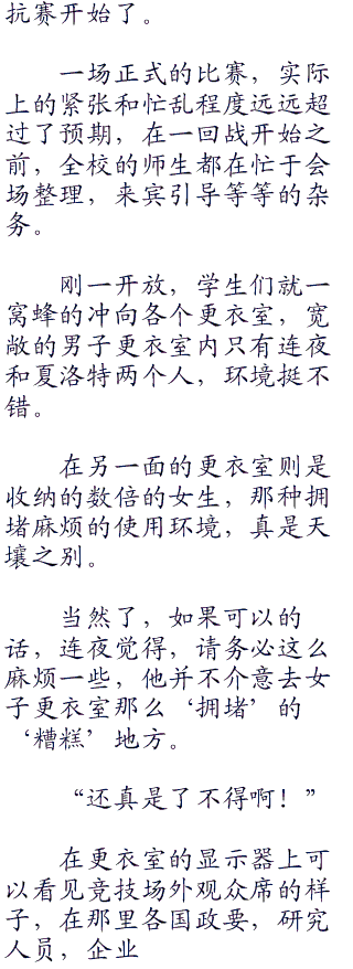 不过出于夏洛特暂时还想要隐藏身份的缘故,所以这束xiong必然还是要绑上一段时间的,否则外人一眼就能看的出她的真实身份出来了,非常态的身份暴露必然会让人心底起疑,而且因为性别的问题,夏洛特也会被安排搬迁出连夜的宿舍,正如篠之之箒的前例一样。