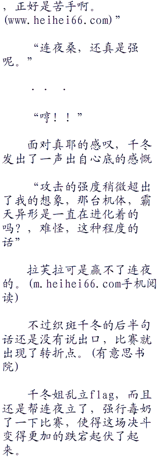 “只是因为连夜桑太过强力了,并非所有人都能够跟上他的节奏,而德诺阿君就非常和善的样子,细腻如水的性格才能够适应霸天异形的节奏吧。”