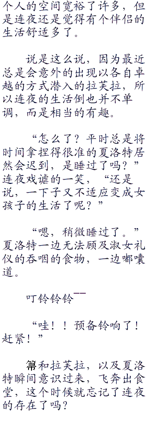 顺便说一下,连夜的左边坐着拉芙拉,正面坐的是箒。
