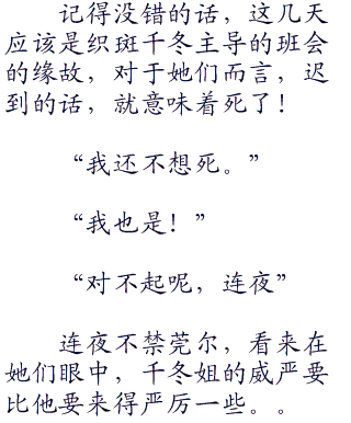 按照这个不负责任,但却意外的很有效的逻辑推理方式,即使被抓奸在chuang,连夜也不会可怜兮兮的像某一个伊藤诚的少年一样,被女狂刺取走性命,然后被女剑圣割下了首级浪迹天涯。