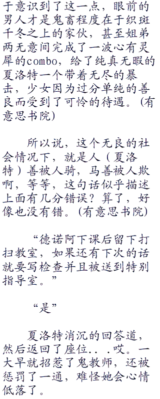 “诶?为什么正式铃声还没有打,鬼教师就已经在教室里了?”夏洛特惊呼道。