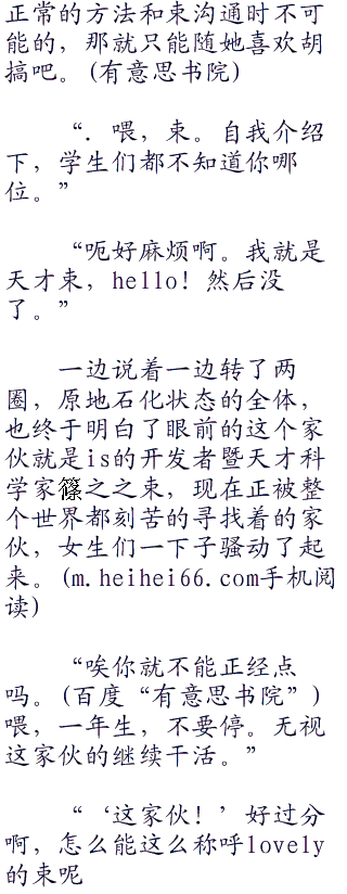 “好,好的。就是iscore中的各种各样的输出交流的网络系统。本来用于在广阔的宇宙空间内进行互相的位置交换而设计。现在则是进行操作者间的公共和私人频道的对话通信用。”