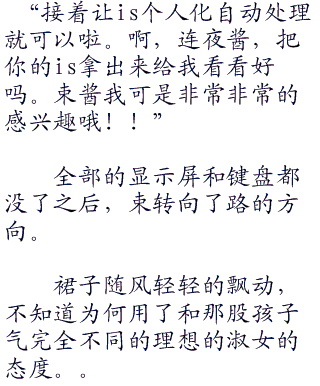 咣的一脚被踹的以狗吃屎的样子扎进沙滩的篠之之束,怎么说呢,好歹也算是一个人就开发出了is的基础理论并将之付诸实践的绝代天才吧,但是这个换快到脱线了的性子,实在是令人无力吐槽了。