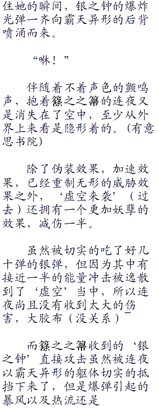 即使是军方的作战动员用is,银色福音在面对连夜和篠之之箒这两个强大的敌手之时,也是用出了超负荷运转的弹幕,在摄迫的形势下,露出了空隙是理所当然的。
