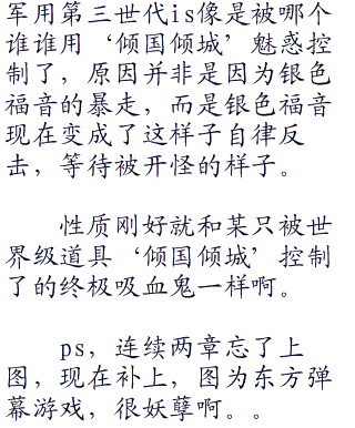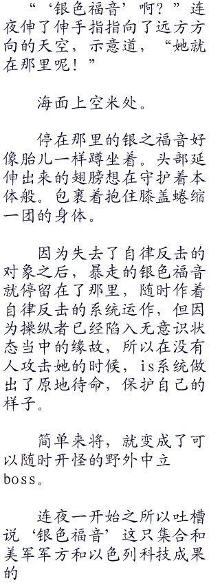 明明篠之之箒在昏迷之前的最后一个定格画面,记得好像就是‘银色福音’几乎全额功率的‘银之钟’锁定轰炸“零零零”,然后连夜抱着她,以霸天异形的躯体来抵挡了敌方的直击罢了。