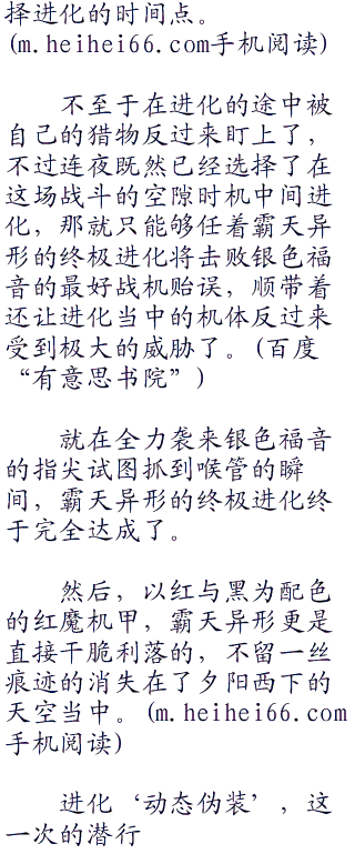 似乎是为了迎接黑夜降临的最后一丝红色夕阳余晖一般,在这种时机之下,霸天异形蜕皮,挣破原有的身体桎梏,完成了最后的终极进化,进化动态伪装。