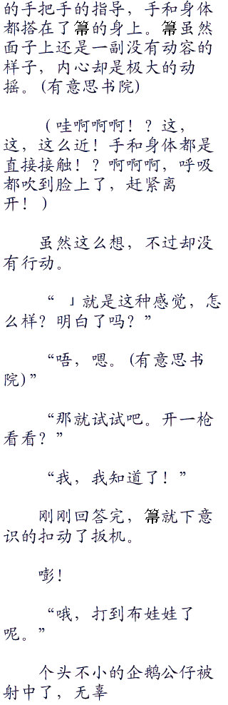 “呃,嗯,还行。”篠之之箒含糊其辞的说道,其实,她压根就不擅长射击方面的技巧吧。