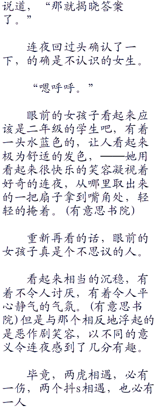 对于这个恶作剧的女孩子,连夜很在脑海当中仔细