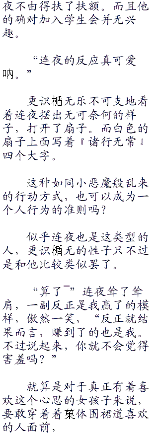 与其说是给连夜便利,倒不如说是更识楯无先给自己谋取了私利,虽然听起来这像是互利的条件。