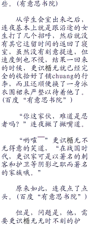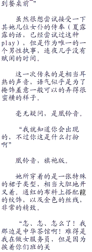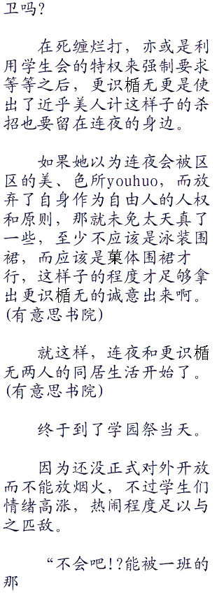 虽然更识楯无捏着裙角,为了让连夜看到泳衣而撅起屁、股的样子看起来也是令人动容不已,但是后者还是不由得一阵扼腕叹息,看来更识楯无的节操值还是在有一定的下限。