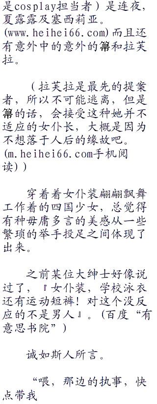 “嘻嘻,这是赶不上夏天临海学校的我,微薄的报复喔!”更识楯无笑嘻嘻的说道,这就叫报复吗?那么请务必报复得更‘惨’一些。