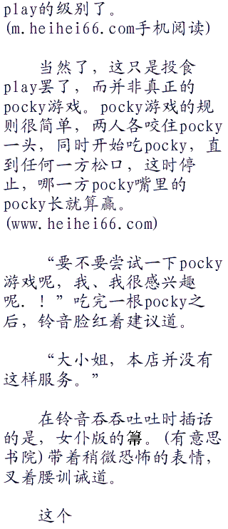 连夜捏着pocky伸到了铃音的嘴边,缓缓的推送而下,伴随着的悉悉索索的声音,pocky被小口小口的嚼碎了。