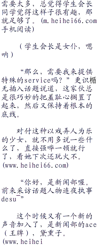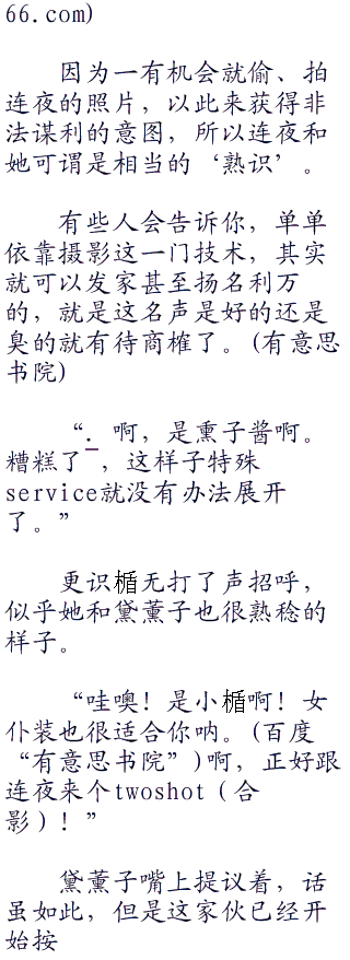“因为这就是所谓的‘服、务’、service啊~”连夜耸了耸肩。说得好听一点叫做男公关,说得难听一点就叫做牛郎,总之连夜目前所需要做的事情,是取悦凰铃音。
