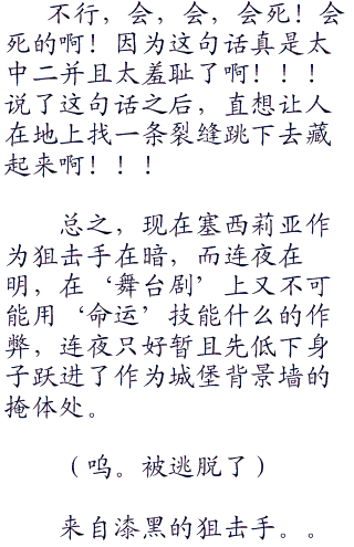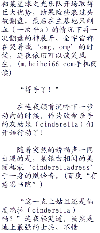 “之前从很多舞会中逃脱,打倒云集的敌兵,不惜沾满‘灰烬’的地上最强的士兵们。而适合她们的称号,那就是『‘灰’姑娘(cinderella)』!”