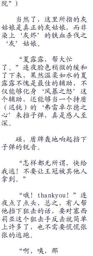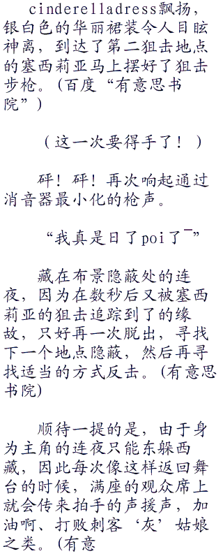 嘴角泻出一丝遗憾的声音,脚下响起弹壳落地的金属音,塞西莉亚的眼离开了瞄准镜。