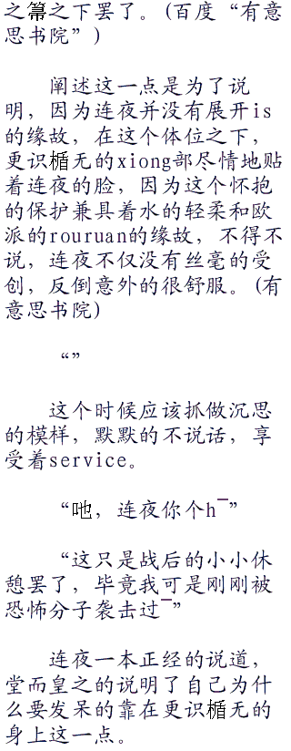 因此无论连夜说什么都不可能让她动摇,说出关于‘机业’的情报出来。