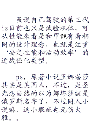 “娜塔莎法鲁斯。国籍俄罗斯,is测试驾驶员,然后,也是银色福音的登录操纵者。”