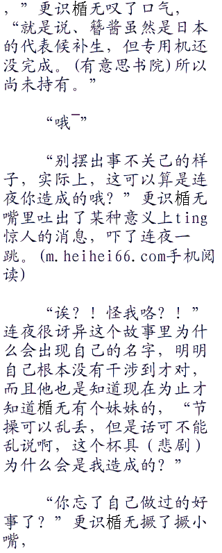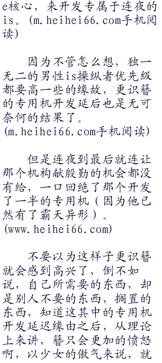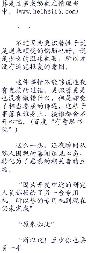 连夜抱着路人围观的心态,不由得感到有些好笑,“啧啧,这样子有点惨咧,而且平行比较一下,凰铃音、塞西莉亚这样子的代表候补生都有自己的专属is,就连箒这样子也因为束的缘故成了暴发户,这样子就更让人难受了吧。”
