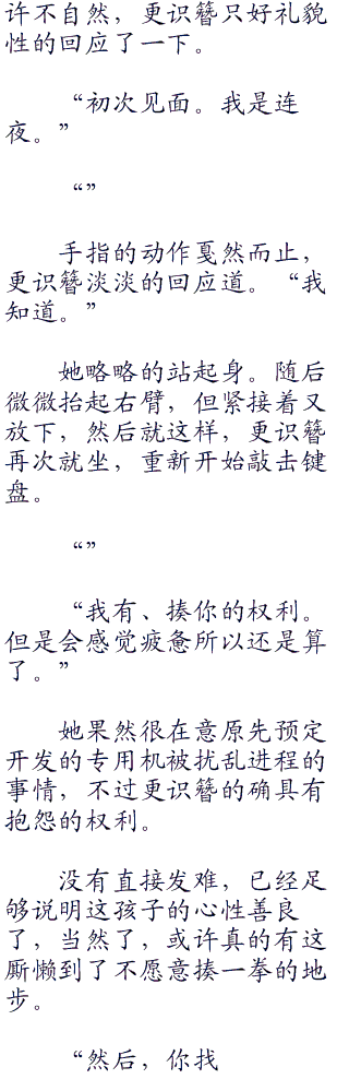 “唔—、她是”连夜的声音到这里戛然而止,完全的吊起了铃音的好奇心。