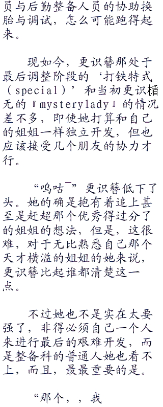 但如果对这种程度的事都无能为力,会让她感觉连姐姐的背影都无法企及。这种自卑感深深地烙印在心里。