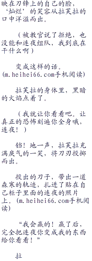 “连夜同学,这一次我会让你为没和我组队而感到后悔的哦。呵,呵呵,呵呵呵呵!”