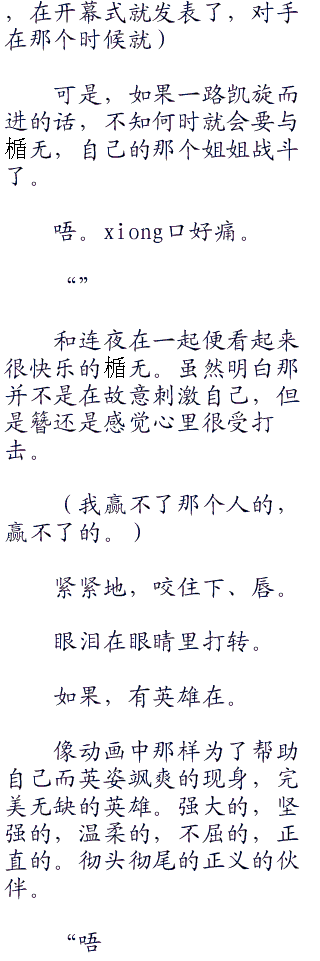 说不定能赶上姐姐了,这样子可以不用再看着她的背影追逐了,能够站在她的身边直视她了,更识簪本来是这样想的。