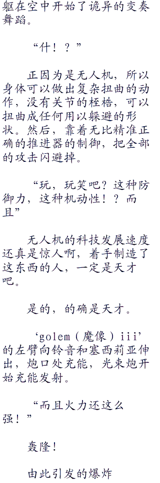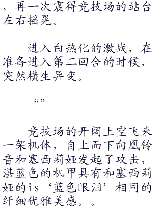 ‘双天月牙’的重刃一击之后又追加攻击,铃音操纵‘甲龍’把袭击者之一,黑色的无人机is踹飞了出去。