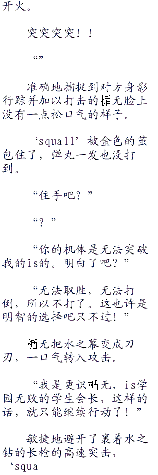 虽然说是枪术对决,但现在可不是讨论这是否公平的时候。况且以塞西莉亚和铃音两个菁英学生来对抗亡国机业的精锐机师,丝毫没有不公平可言。