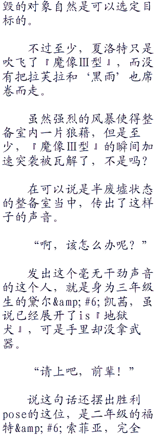 抱有这种想法的同时,拉芙拉斜刃向上高速斩了过去,不料却被『魔像Ⅲ型』右臂的金属刃手拦下。