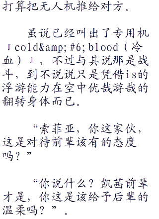 撞碎了天棚现身的,顺势加速向刚刚在整备当中的拉芙拉扑袭而来。因为拉芙拉尚未登场比赛的缘故,完全被无人机趁其不备制住了。